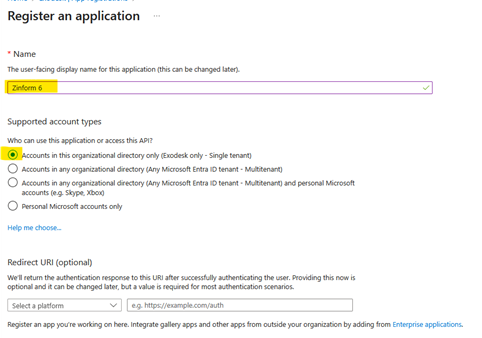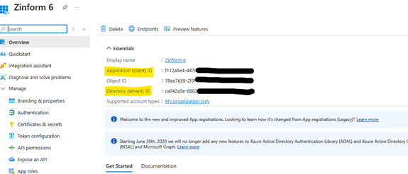 Zinform 6 will require: TenantId, ClientId and Secret for the software to send emails. From there it can set up as a global sender i.e. accounts@exodesk.com or an individual user john.sample@exodesk.com.