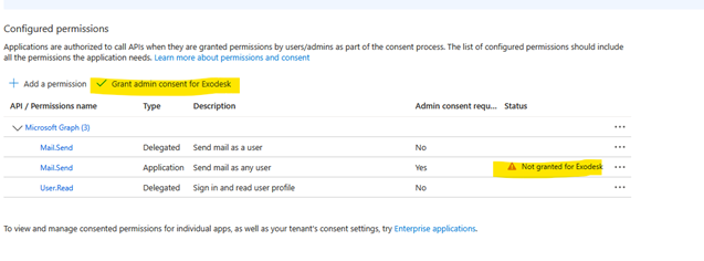 Make sure “Grant admin consent for XXXXX” is clicked.